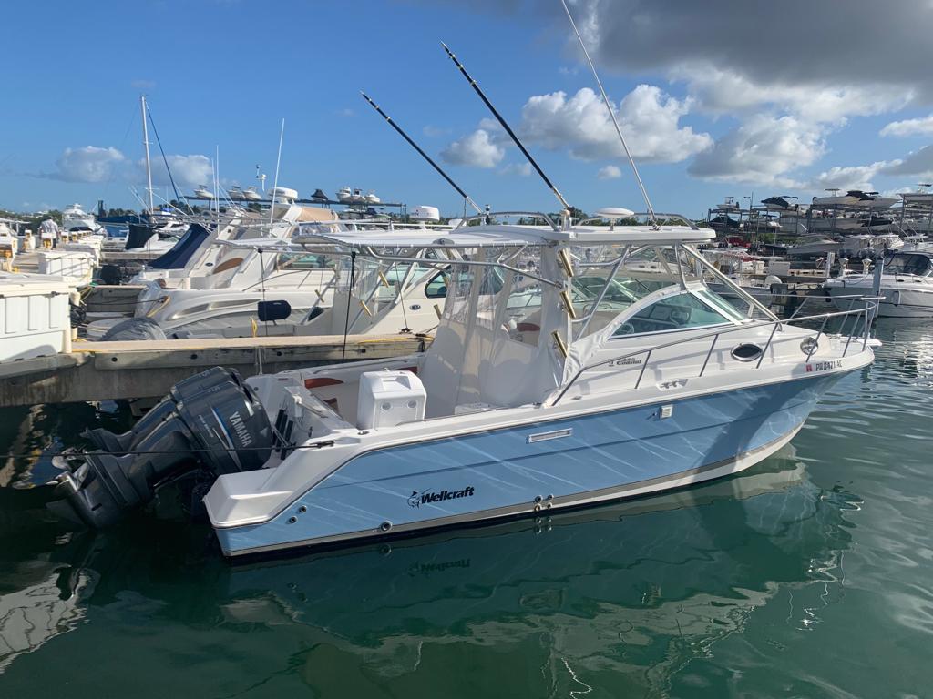 Wellcraft Coastal 290 | Excellent cabin condition, TV, Kitchen, Microwave, Refrigerator, bathroom, Air conditioner. Navigation plans can include visiting one of the following: Palomino Island, Icaco Island or Medio Mundo (Cayo Piñeros). The boat will have there captain, safety equipment, large cooler with ice and water.